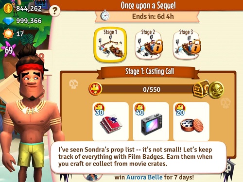 Collect ingredients from around the island to craft props that will be used in the movie set. You can also get props by opening movie crates. Earn Film Badges for the props you've collected.